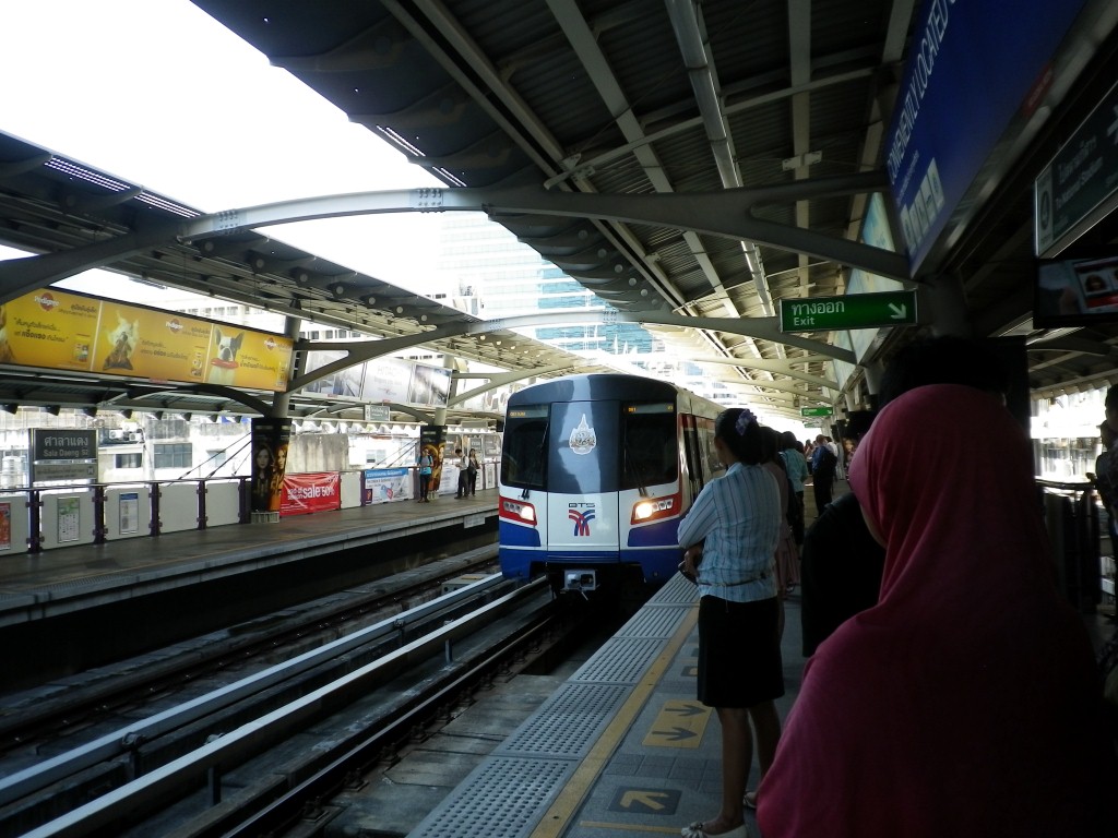 Reippaasti suuntasimme kulkumme rautatieasemalle, josta myös sky trainin kyytiin pääsisimme. Tai sitten emme. Nainen metroasemalla kertoi, että lähin asema vempeleeseen olisi siellä, mistä olimme liikkeelle lähteneet. Saimmepa testata paikallisen metrokyydin ja sen uumeniin olisi voinut jäädä viileyden vuoksi viettämään päivää pidemmältikin. Kuriositeettina mainittakoon metron turvallisuustarkastus: hälytinportti vilkutti punaista valoa ja vartija kurkkasi taskulampulla arviolta puoli sekuntia laukkuun. Thaimaalaiset näkyvätkin olevat erinomainen kansa ihmisten työllistämisessä, sillä tässäkin tapauksessa toimi vaikutti lähinnä muodollisuudelta.